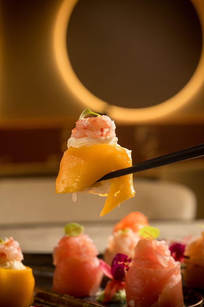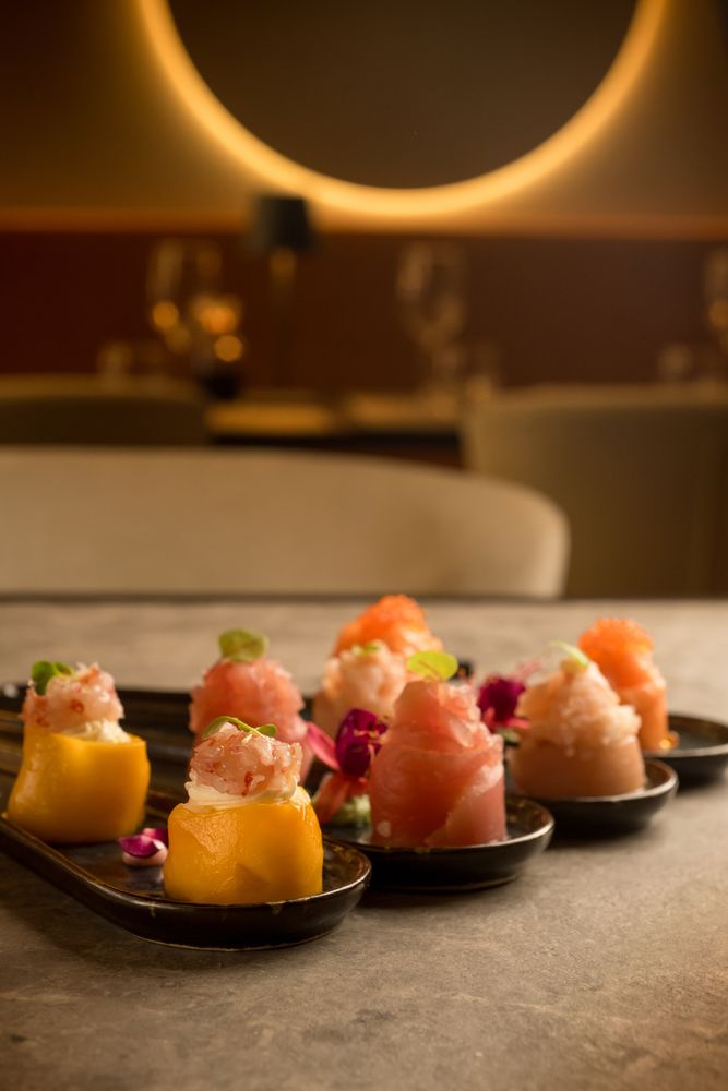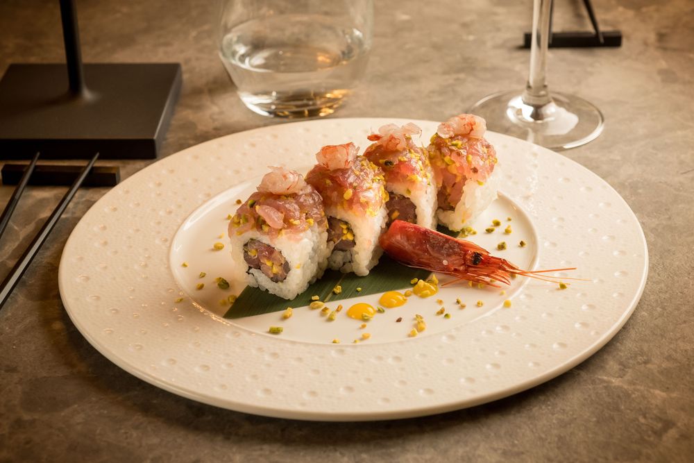 La cucina fonde l’essenza della tradizione giapponese con influenze fusion dallo spirito internazionale, dando vita a piatti dal gusto deciso, dall’estetica curata e dalla forte identità.