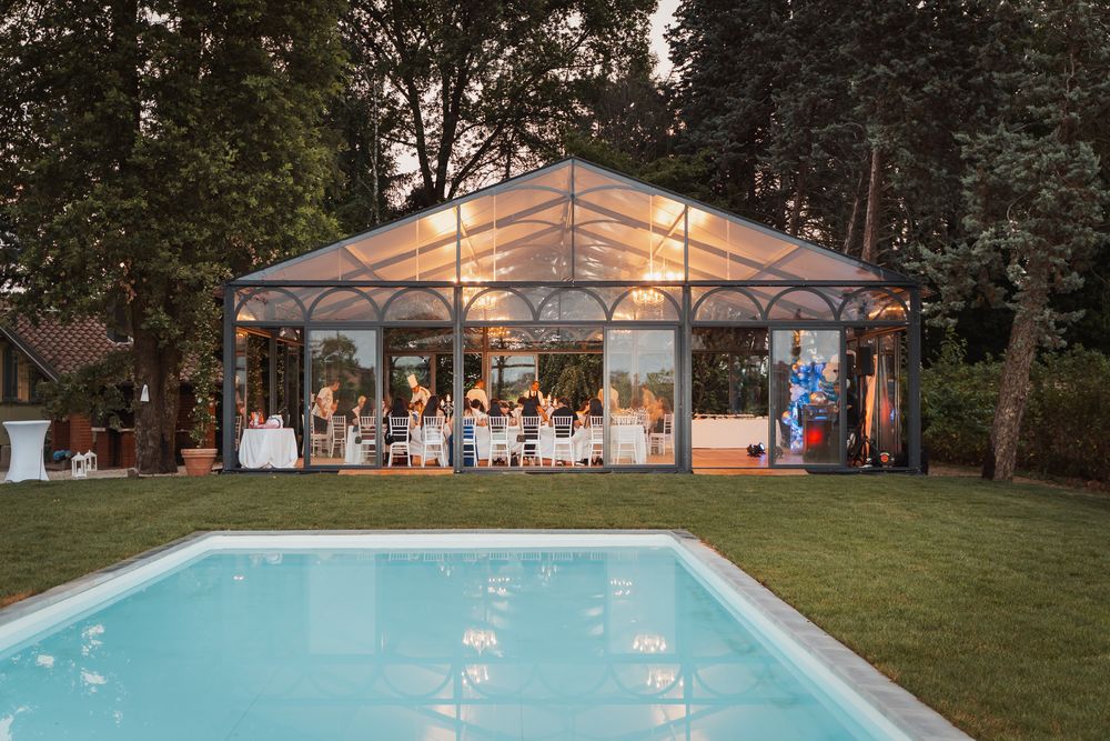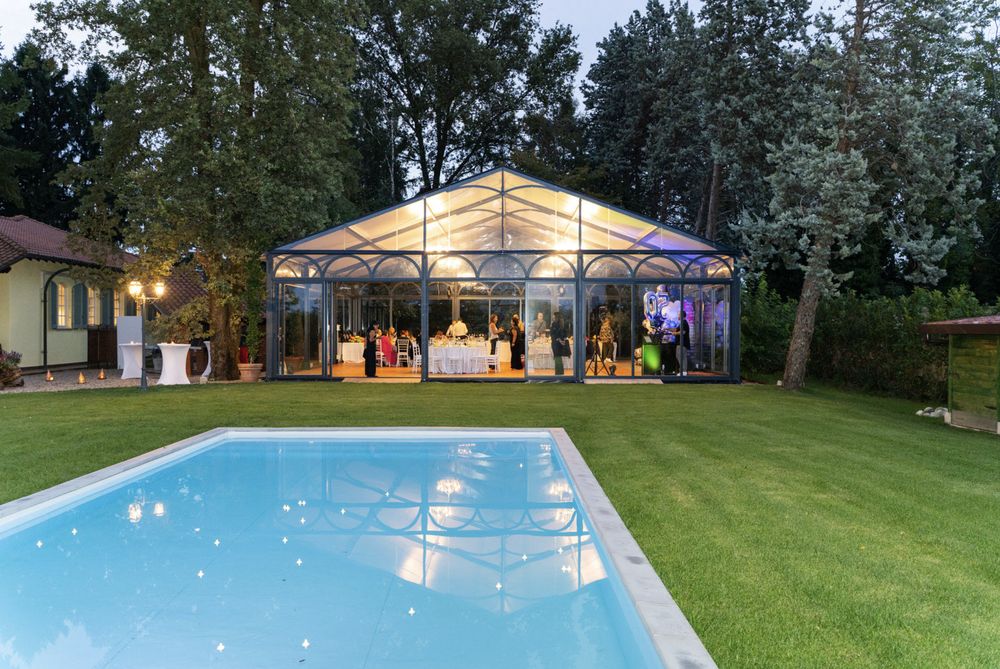 • Ambienti esclusivi e versatili: Greenhouse, salone e parco con piscina