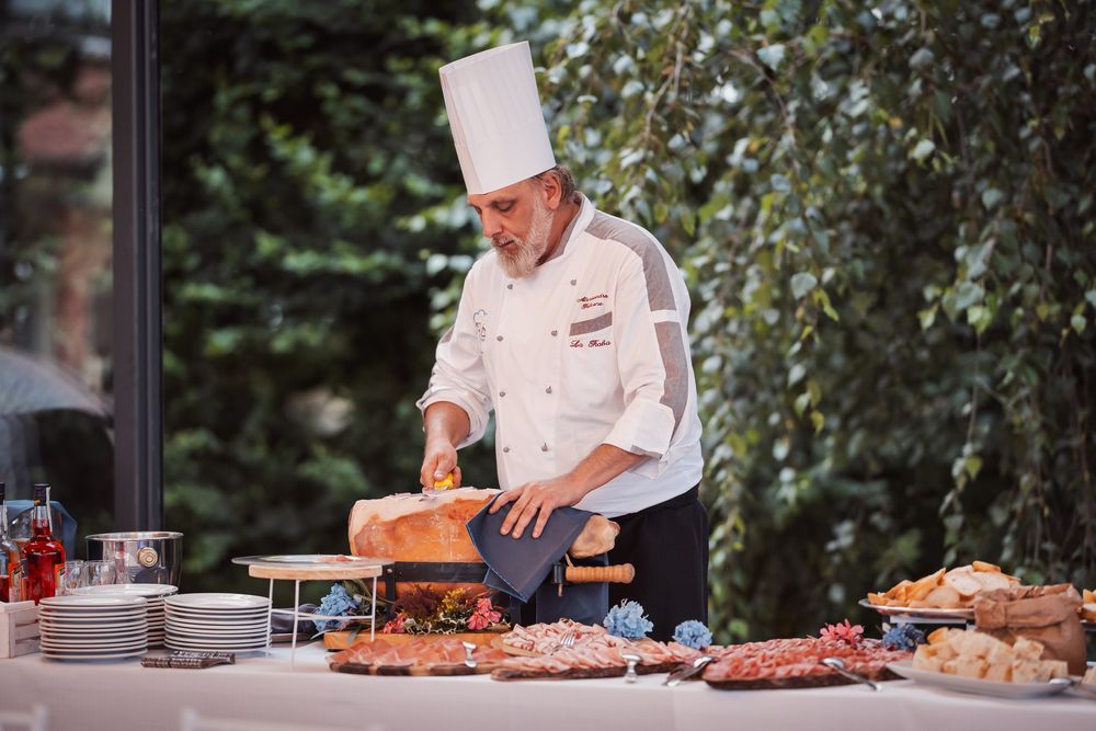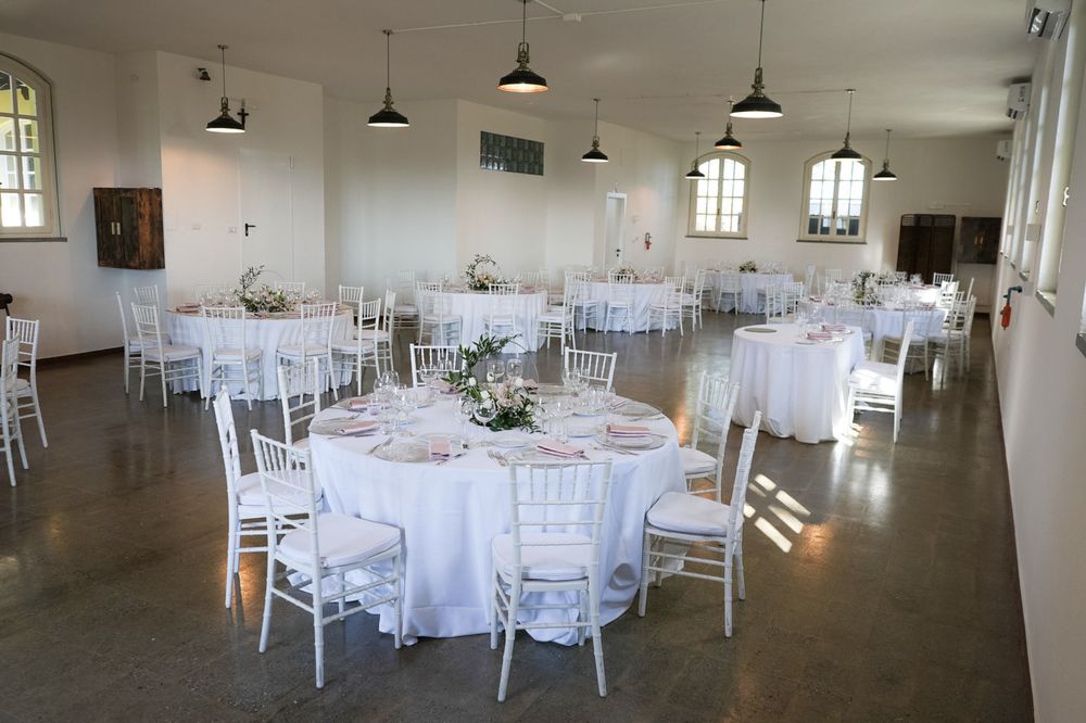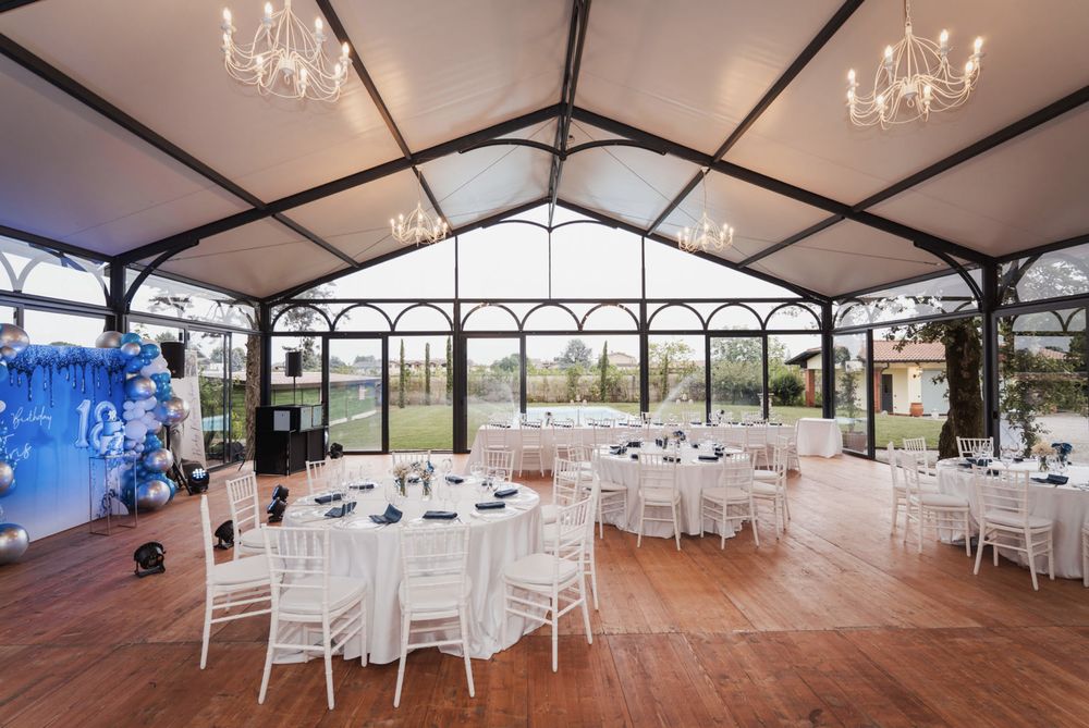 • Il Salone: 200 m² climatizzati dal design che unisce modernità e tradizione artigianale, perfetti per accogliere fino a 130 ospiti seduti.